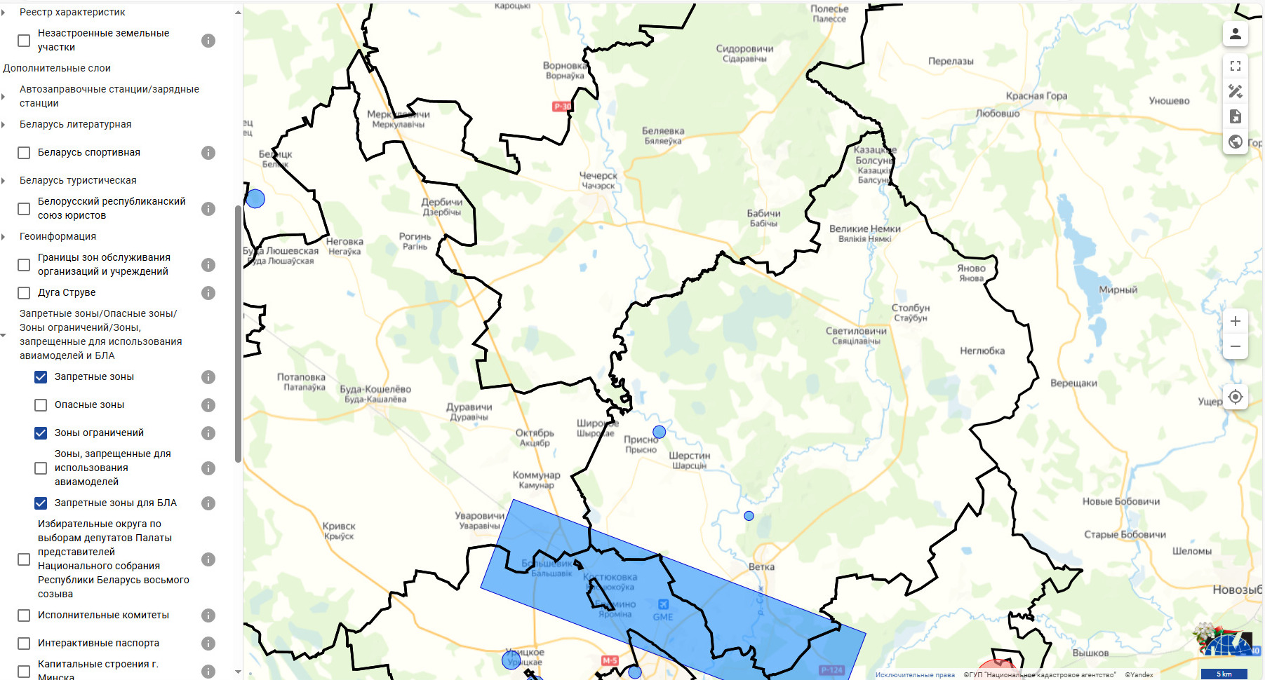 Карта забароненых зон у Веткаўскім раёне