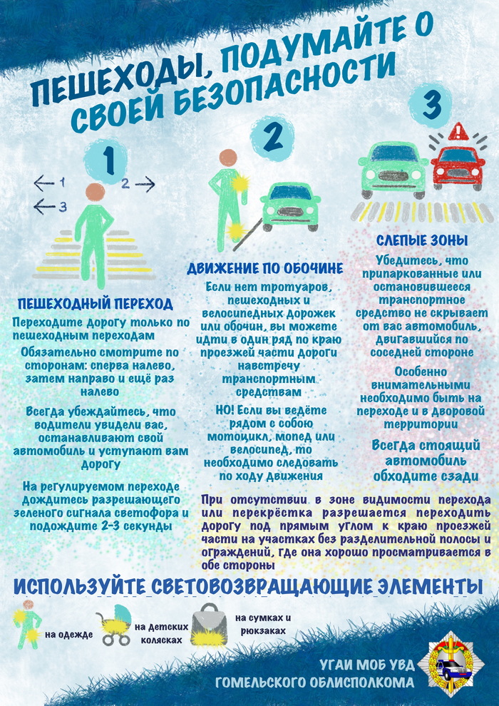 З надыходам халоднай пары, мы, вядома ж, імкнемся апранацца па надвор'і, але многія пешаходы, апрануўшыся цяплей і надзеўшы капюшоны, ужо не ў стане лішні раз паглядзець па баках для таго, каб своечасова заўважыць надыходзячы аўтамабіль. Будзьце асцярожныя і заўсёды памятайце, што толькі ад таго, наколькі адказна Вы падыходзіце да захавання ПДР, залежыць ваша жыццё!