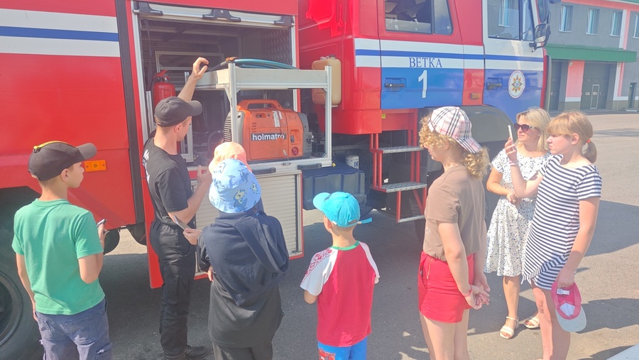 Выхаванцы Веткаўскага раённага сацыяльна-педагагічнага цэнтра ў рамках акцыі "Канікулы без дыму і агню" наведалі пажарную аварыйна-выратавальную часць №1.