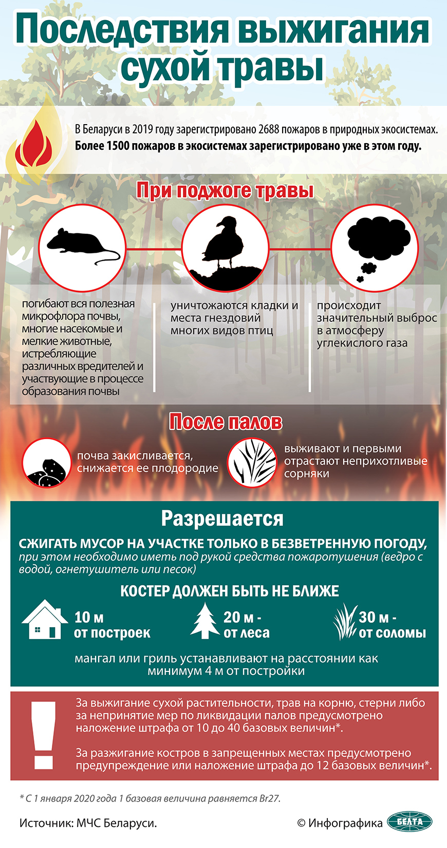 МЧС Республики Беларусь предупреждает о последствиях выжигания сухой травы