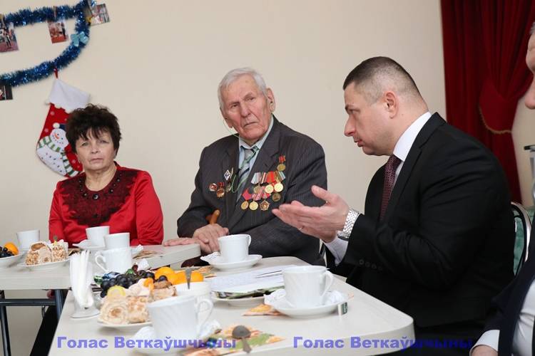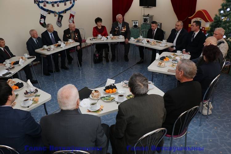 За круглым столом с чашечкой чая глава района Павел Силивончик и председатель райсовета депутатов Виктор Масейков общались с активом ветеранской организации и членами Совета старейшин.