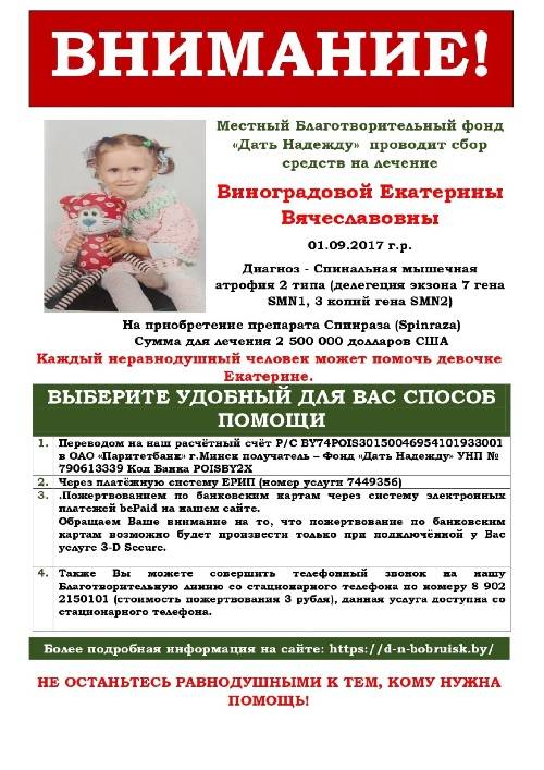 Местный благотворительный фонд "Дать надежду" проводит сбор средств на лечение