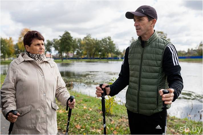 — Такие занятия входят в число самых полезных, как бег или плавание. Но при обычном беге задействовано не больше 60 процентов мышц, а за счет использования рук при ходьбе уже включается до 90 процентов. Мы не случайно пришли к идее создания нашего клуба. Женщины постоянно приходили и спрашивали, чем можно себя занять. Да и спорт идеально подходит даже для самых возрастных участников. Это же не только физическая активность, но и прогулка, возможность пообщаться друг с другом. Перетренироваться здесь сложно, погода тоже подойдет любая, кроме дож-дливой. Главное — хорошо размяться перед началом.