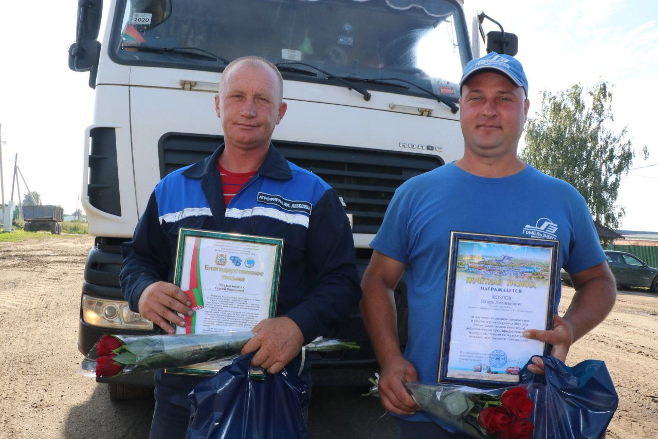 Передовиков жатвы поздравили глава районного депутатского корпуса Виктор Масейков, заместитель генерального директора РУП «Гомельэнерго» Сергей Жандаров, председатель районной организации профсоюзов Вадим Гаврилов и главный технический инспектор труда обкома профсоюза работников энергетики, газовой и топливной промышленности Светлана Осинена.