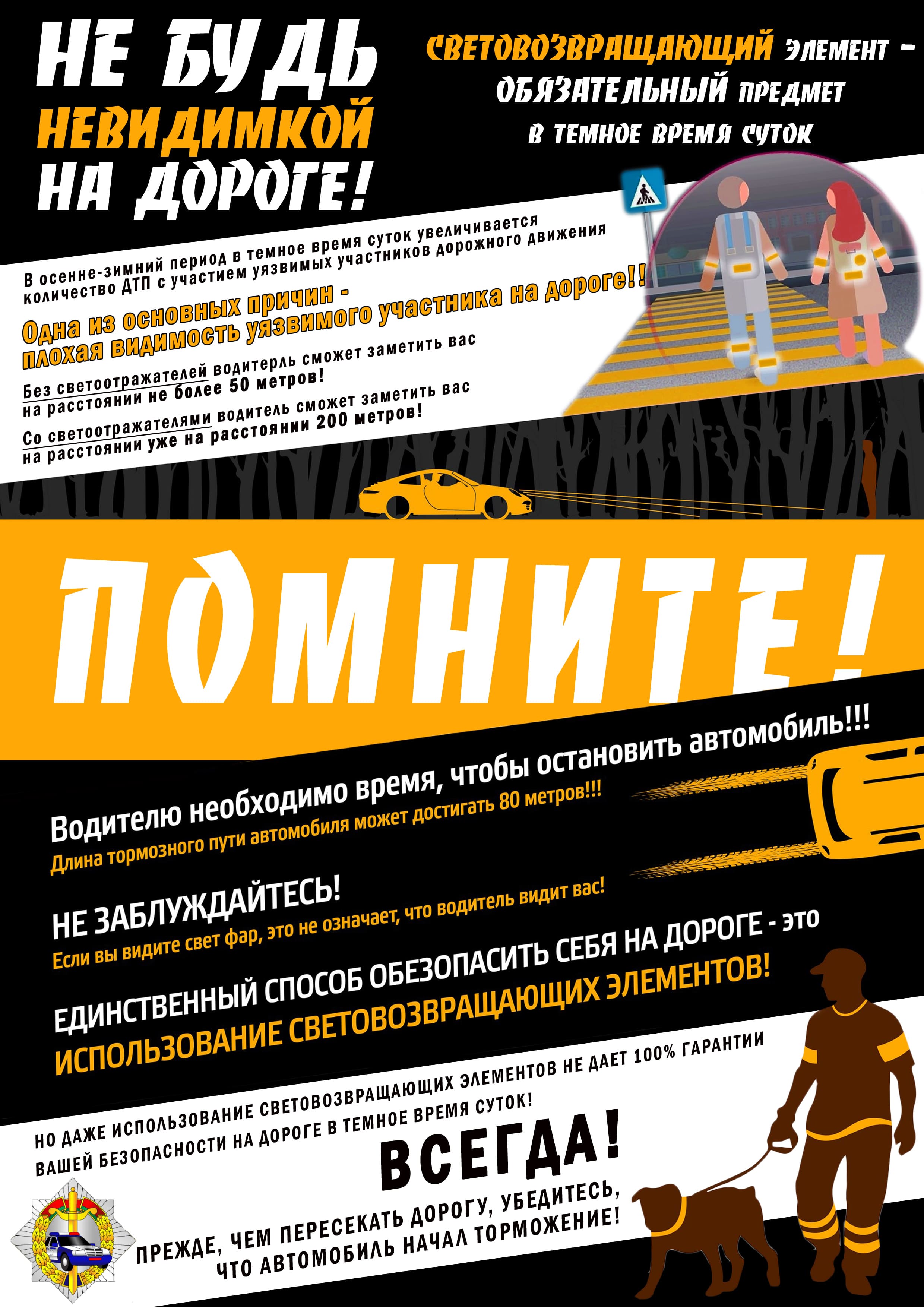 У сувязі з гэтым, а таксама з мэтай папярэджання ДТЗ з удзелам непаўналетніх, у перыяд з 24 па 30 кастрычніка 2024 года на тэрыторыі Гомельскай вобласці Дзяржаўтаінспекцыяй будзе праведзена прафілактычная акцыя "Першыя канікулы. Стань больш прыкметным у цемры!".
