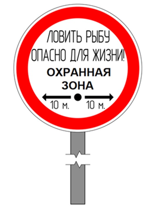 Не ігнаруйце знакі бяспекі, усталяваныя ў месцах перасячэння і збліжэнняў ліній з вадаёмамі - "Лавіць рыбу небяспечна для жыцця, ахоўная зона".