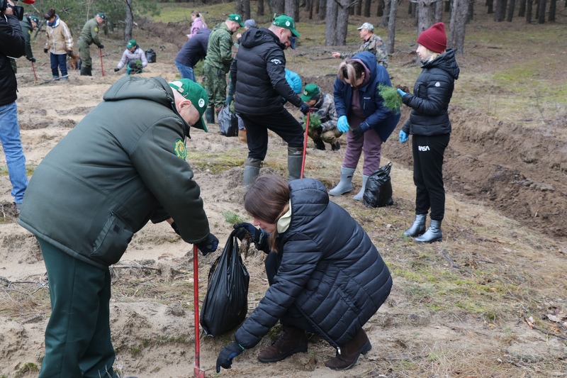 Трымаючы ў руках далікатныя высадкі хвоі, Юрый Іванавіч распавёў, наколькі яны безабаронныя перад прыродай і людзьмі і як шмат гадоў трэба для таго, каб сённяшнія намаганні лесаводаў ператварыліся ў паўнацэнны лес. Адзначым, што акцыя "Аднавім лясы разам!" праходзіць у краіне не першы раз. Яна накіравана ў тым ліку на выхаванне ў школьнікаў беражлівых адносін да аднаго з найважнейшых прыродных рэсурсаў Беларусі. Таму недалёка ад таго ўчастка, дзе працавалі прафесійныя лесаводы, свой уклад у аднаўленне лясоў уносіла мясцовая дзятва і школьнікі - сыны і дачкі работнікаў Веткаўскага спецлясгаса. Разам з бацькамі яны працавалі над стварэннем будучага хваёвага бора.
