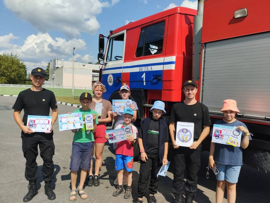 Выхаванцы Веткаўскага раённага сацыяльна-педагагічнага цэнтра ў рамках акцыі "Канікулы без дыму і агню" наведалі пажарную аварыйна-выратавальную часць №1.
