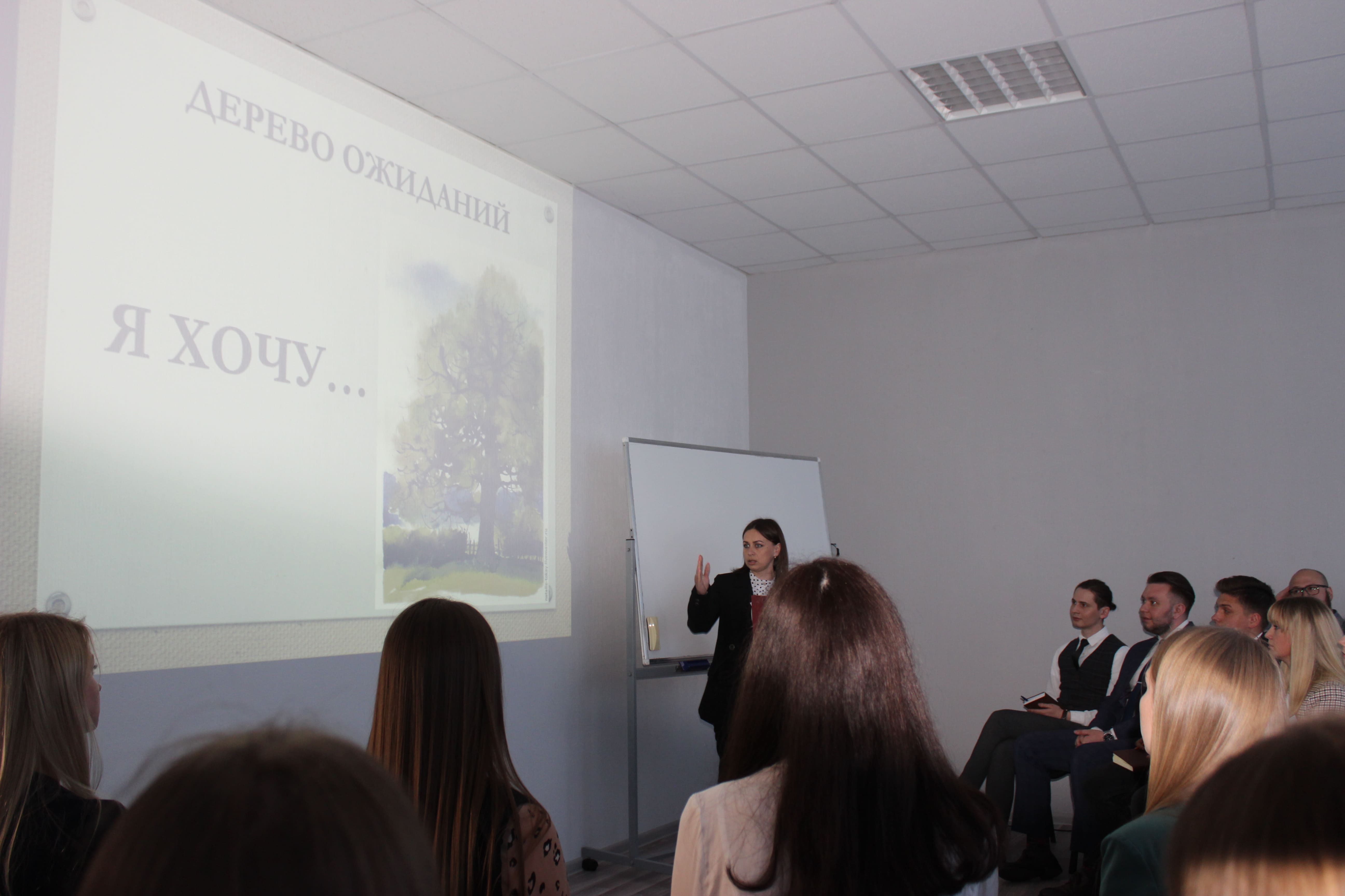 Опытом работы на руководящих должностях, формулой профессионального развития и карьерного роста, а также представлениями об имидже современного руководителя с перспективной молодёжью поделилась старший преподаватель кафедры социальной и педагогический психологии ГГУ им. Ф. Скорины Ольга Короткевич.