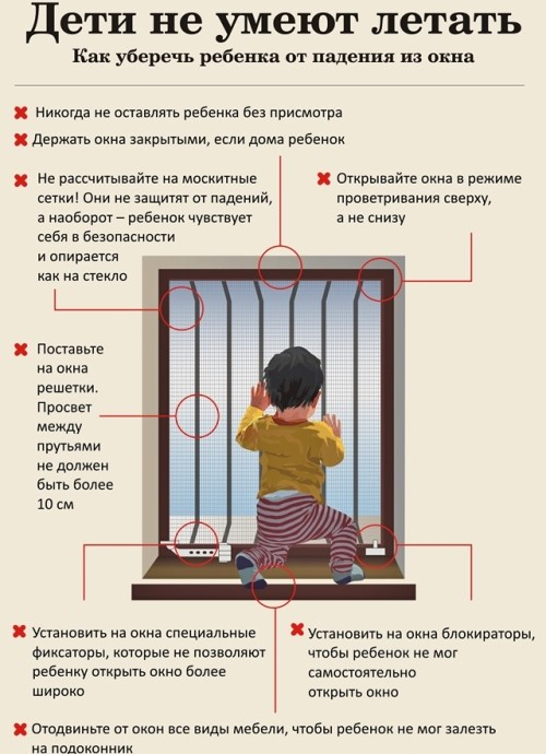 Особенно часто о трагических случаях, связанных с падением малышей из окон или с крыш, можно услышать в конце весны, летом и в начале осени. Происходит это по разным причинам: родители отвлеклись или вовсе отсутствовали дома, дети играли или опирались на москитные сетки, не выдержали стеклопакеты — случается разное: