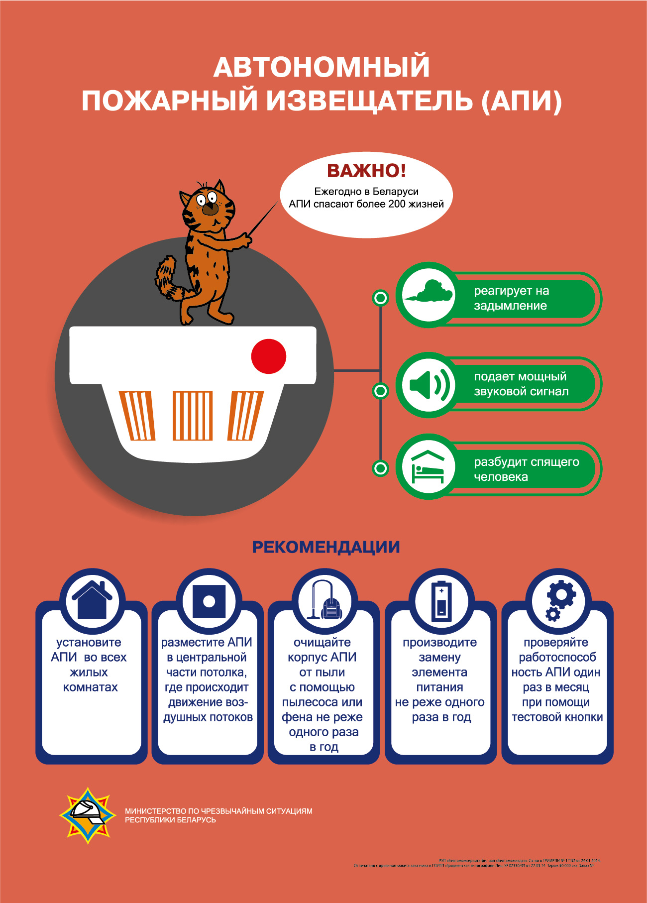 - Чтобы предупредить тяжкие последствия чрезвычайных ситуаций, рекомендуется установить в жилье автономный пожарный извещатель. При срабатывании этот прибор, к примеру, в ночное время при возникновении пожара может разбудить людей. Они смогут оперативно отреагировать на возгорание на его начальной стадии, вызвать спасателей, эвакуироваться либо потушить самостоятельно», ‒ пояснил заместитель начальника отдела Вячеслав Бутько.