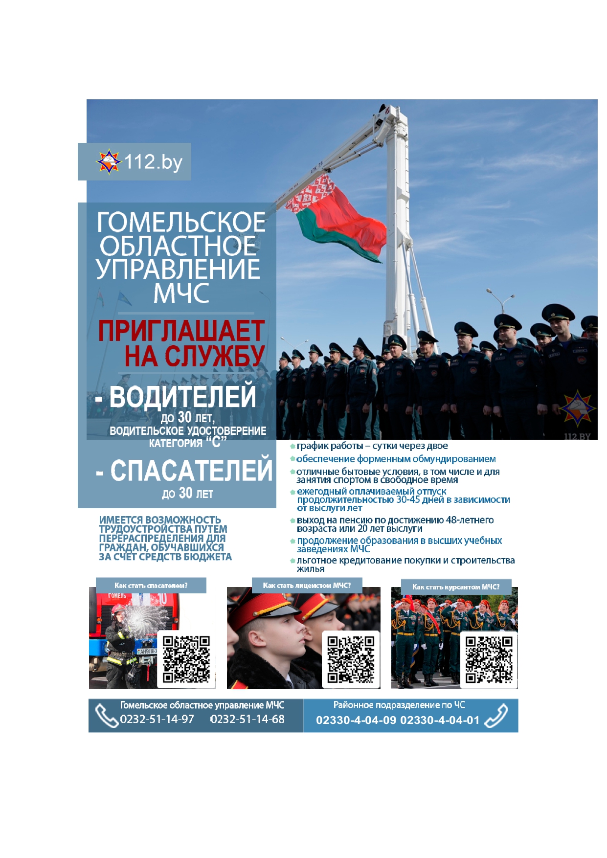 Ветковский РОЧС приглашает на работу водителей категории С и спасателей.