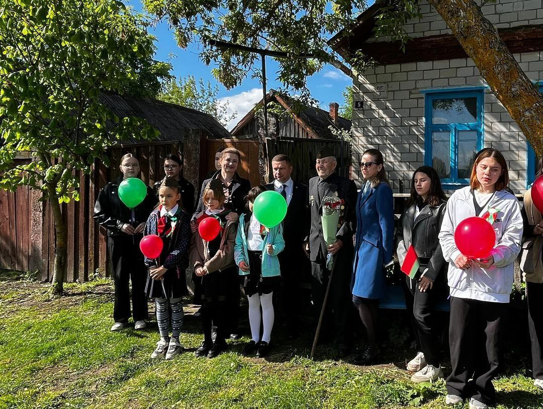 С подарками и теплыми поздравлениями к ветерану приехали председатель райисполкома Павел Александрович Силивончик, заместитель председателя Наталья Александровна Дорошевич, начальник управления по труду, занятости и социальной защите райисполкома Татьяна Васильевна Воинова, представители социальной службы и школьники из местной школы.