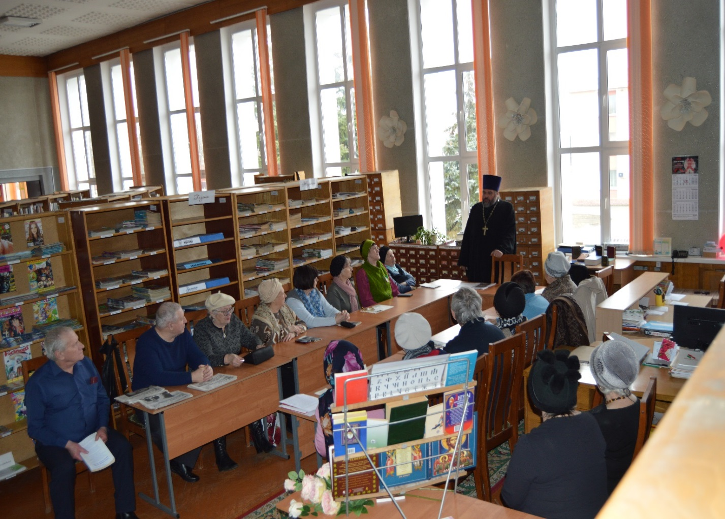Мероприятие посетили протоиерей Андрей из Свято-Никольского храма (аг.Даниловичи) и сотрудники АСБ Белорусбанк Субботина Е.И. и Чижикова Е.Н. Присутствующим рассказали об истории возникновения праздника, посвященного православной книге, познакомили с литературой православных писателей. Собравшиеся с большим интересом слушали священника, поддерживая разговор, задавая вопросы. Это общение позволило гостям мероприятия не только открыть силу православной книги, спасающей душу, но и побудило задуматься о своем месте в этом мире. Специалисты банка проинформировали собравшихся об оформлении пенсионных банковских карточек и кредитов для пенсионеров, о том, как уберечься от мошенников в информационный век.